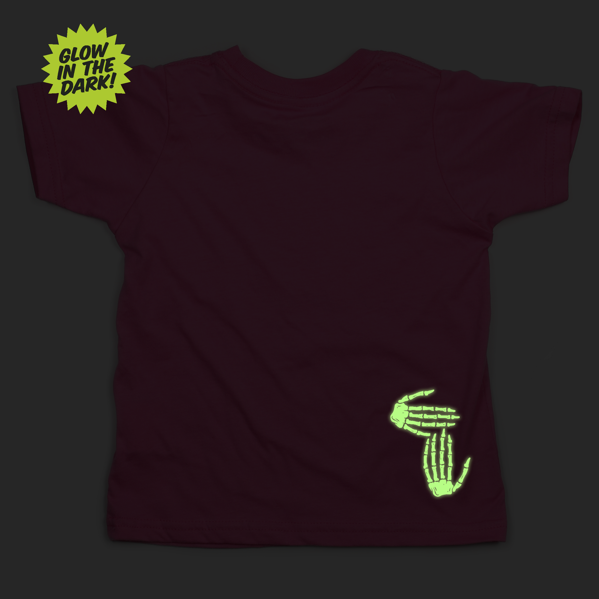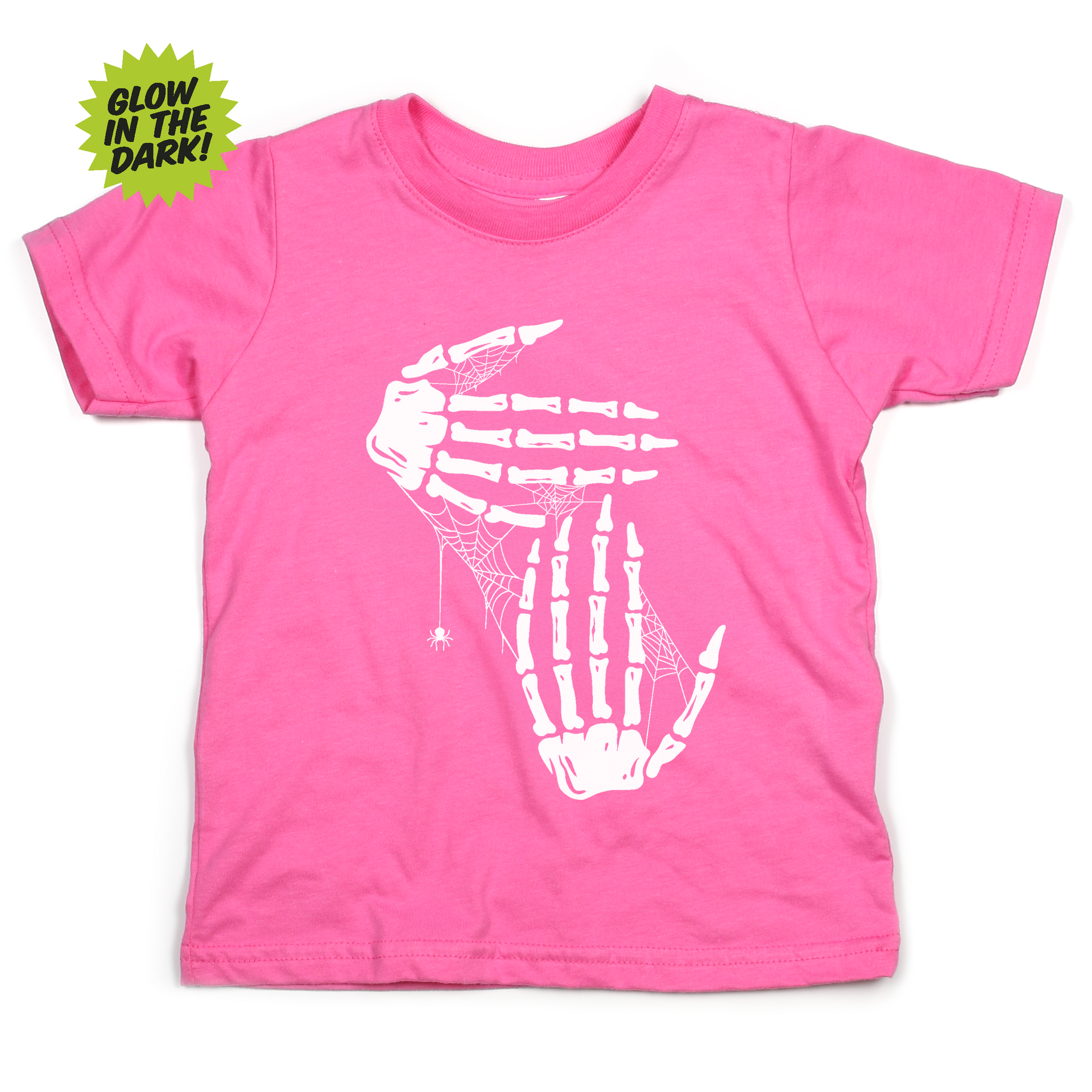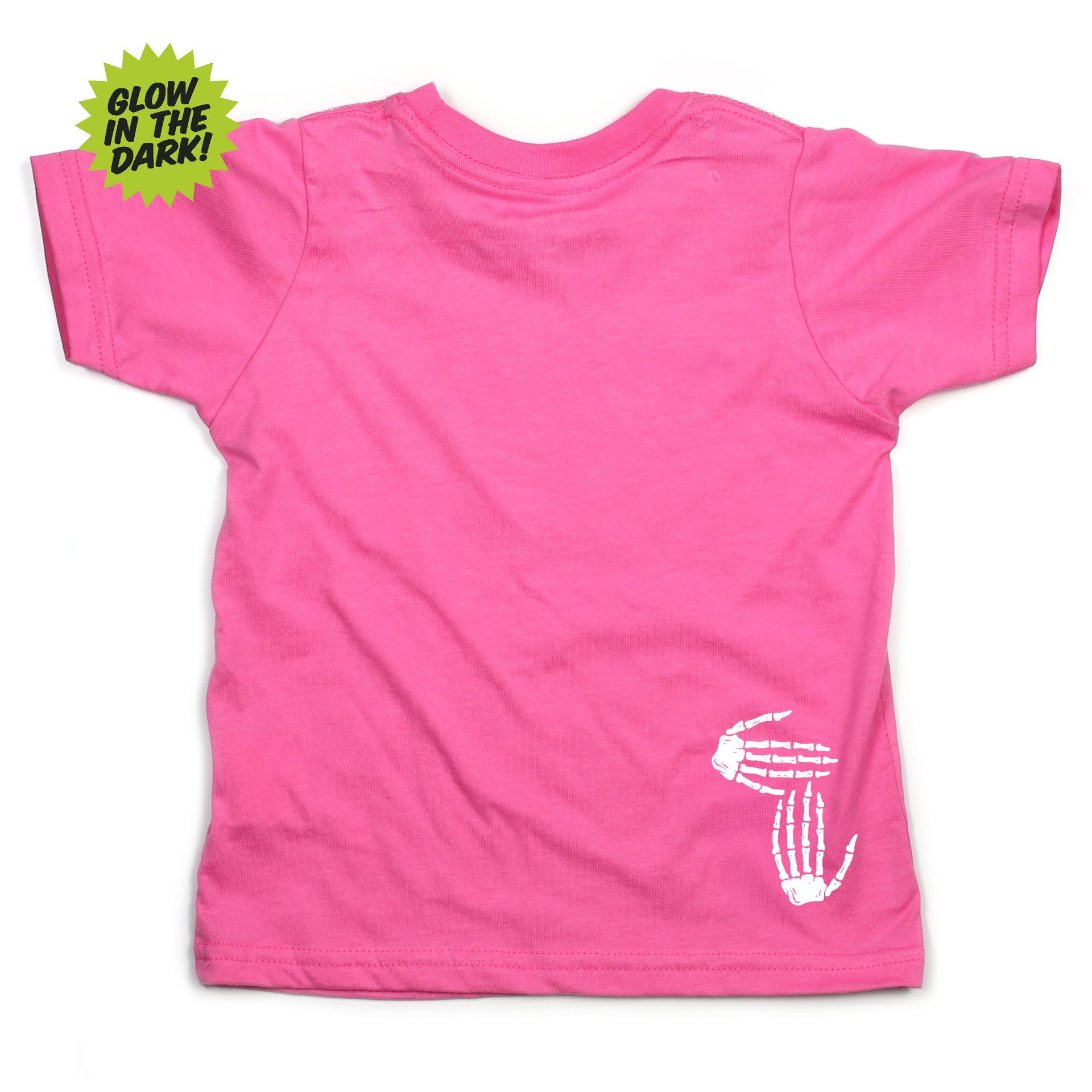 A spooky fun play on our iconic logo printed on a pink tee with Glow-in-the-Dark ink! Pick up this limited edition Skeleton Hands tee to be the hit of all your Halloween festivities before they disappear!