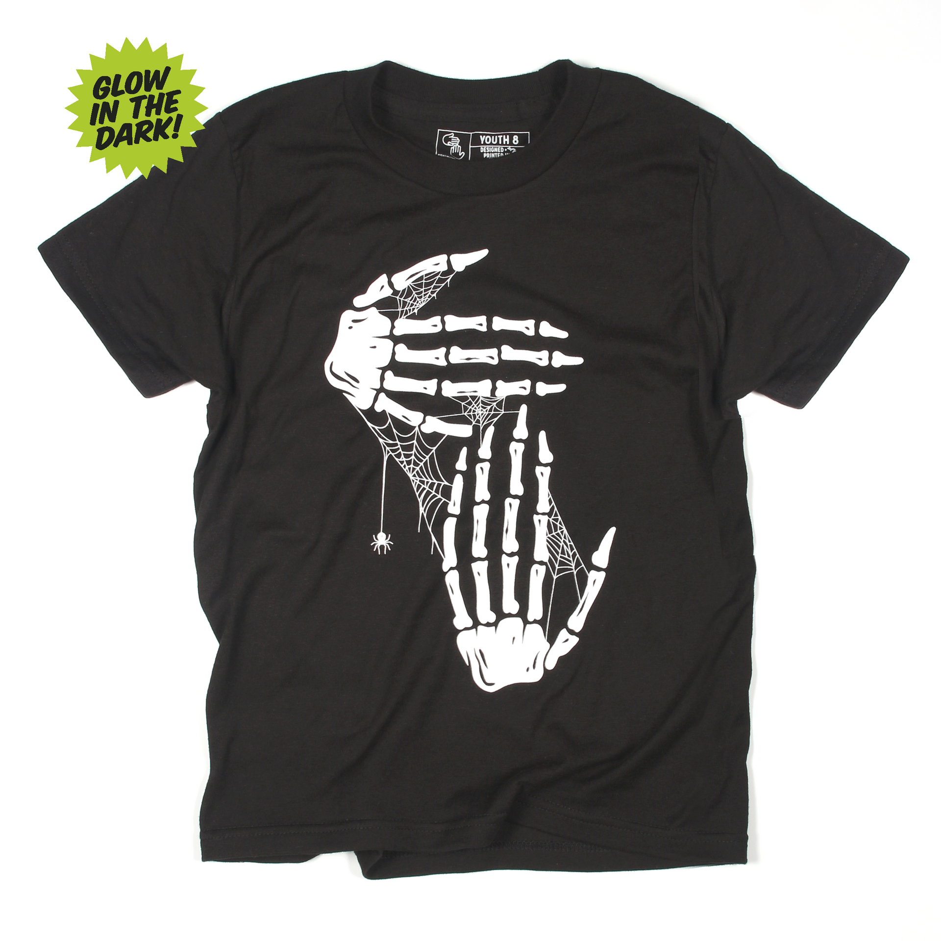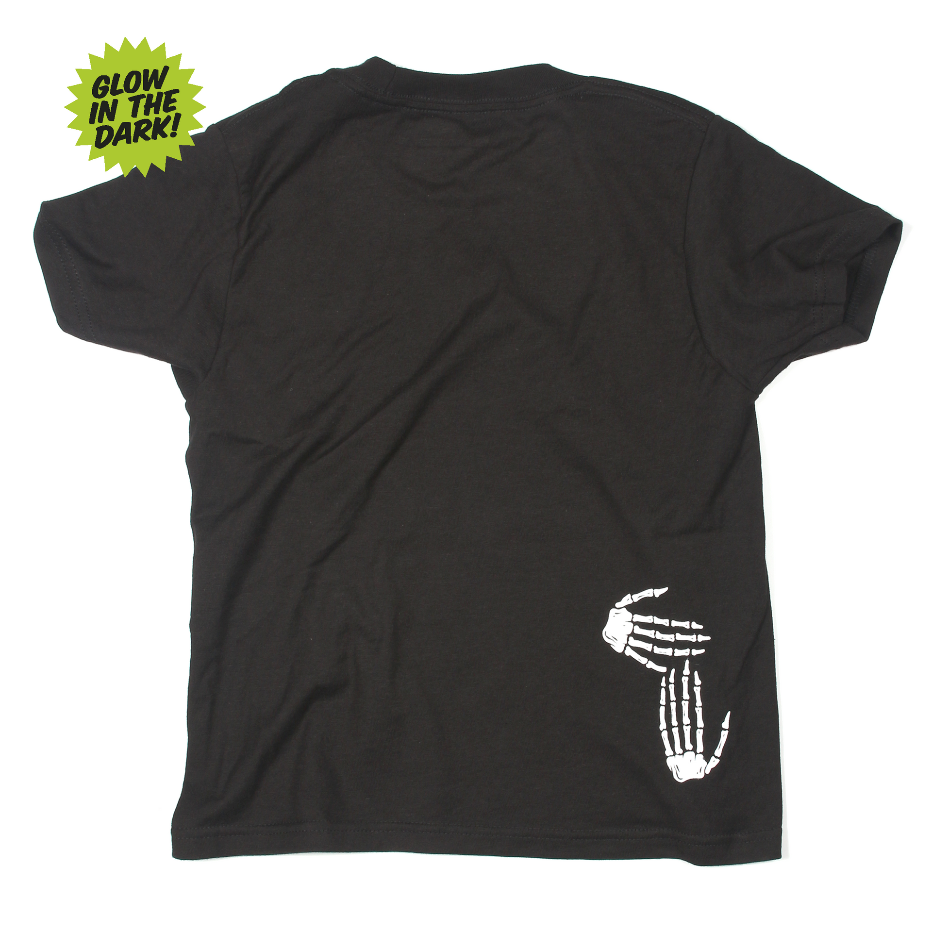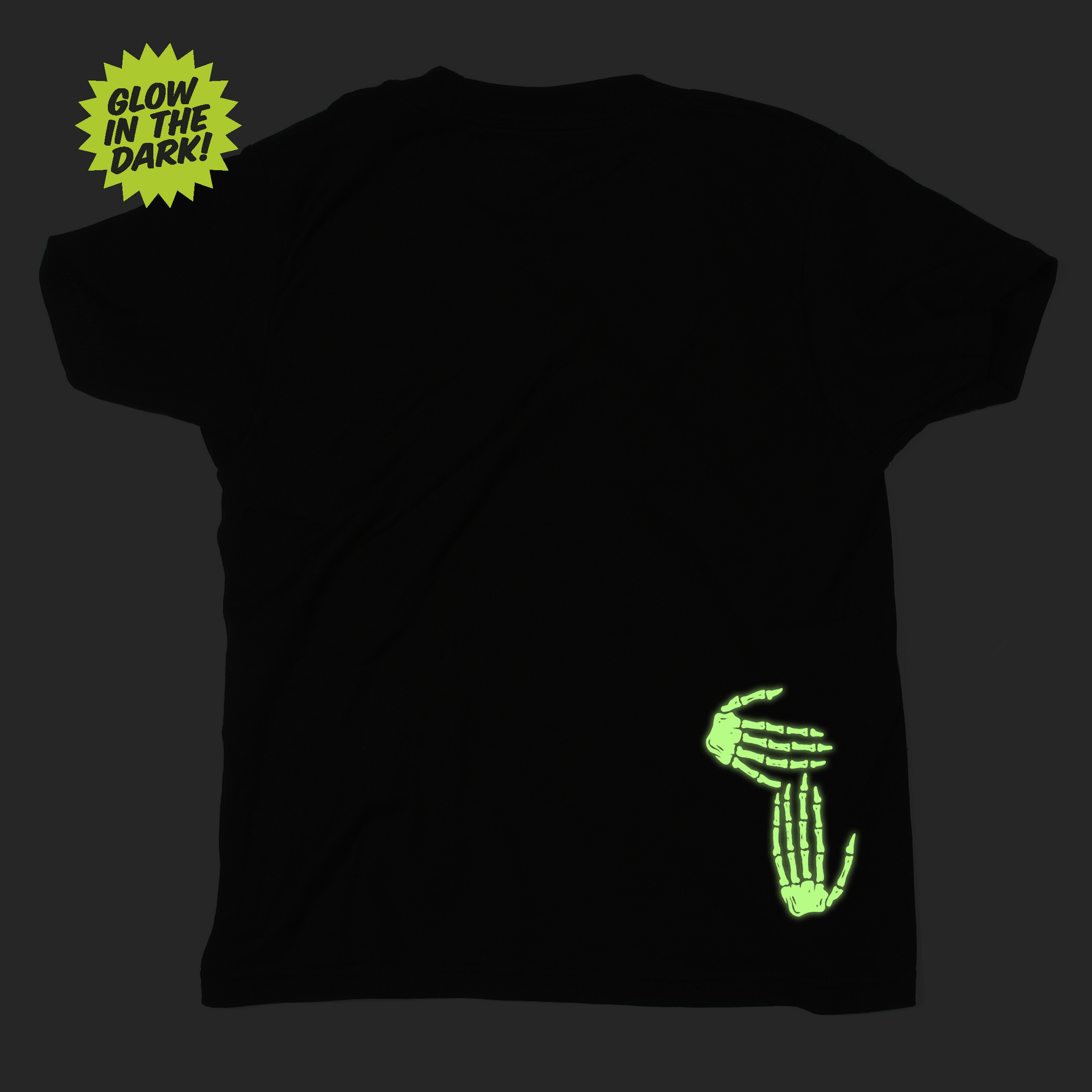 A spooky fun play on our iconic logo printed on a dark grey tee with Glow-in-the-Dark ink! Pick up this limited edition Skeleton Hands tee to be the hit of all your Halloween festivities before they disappear!