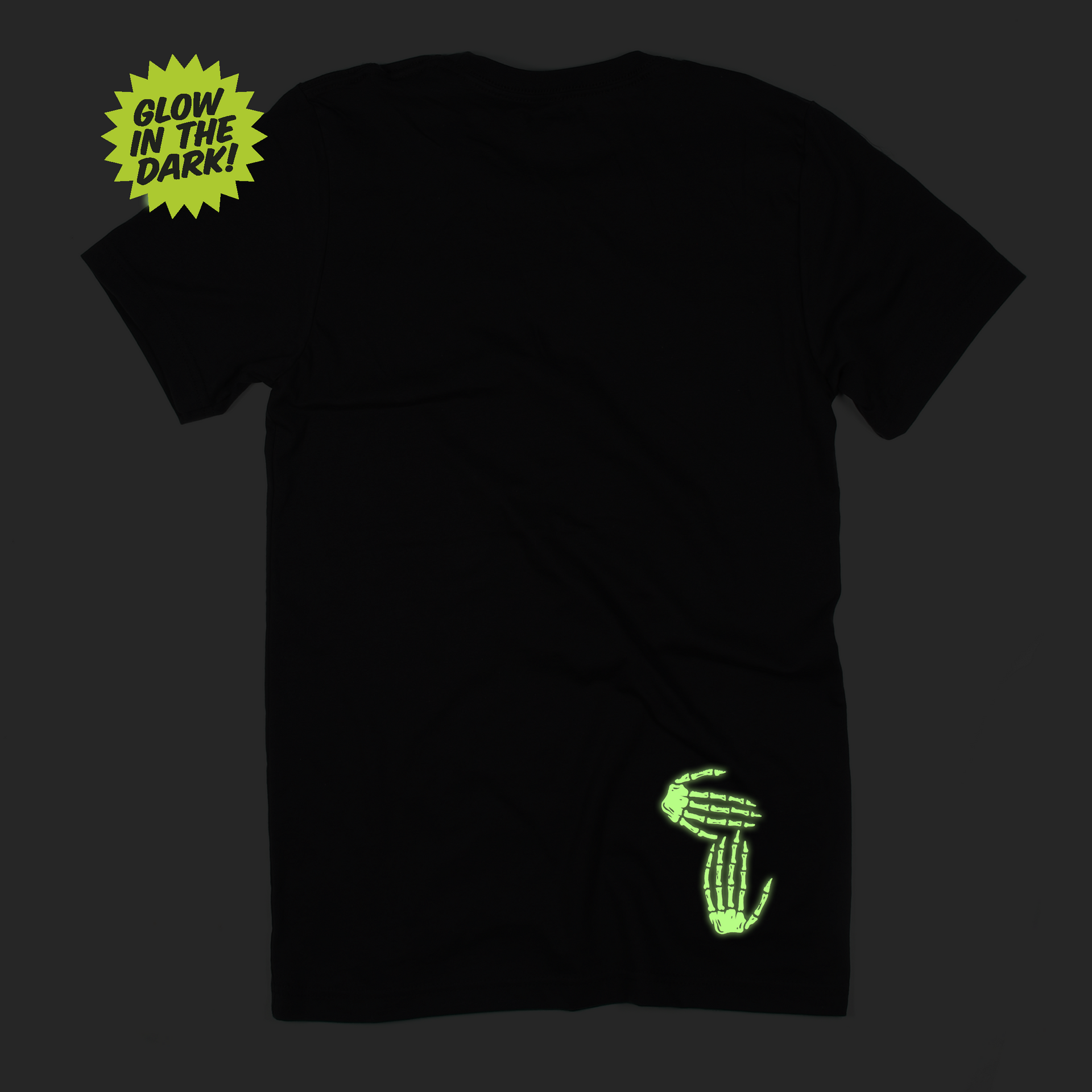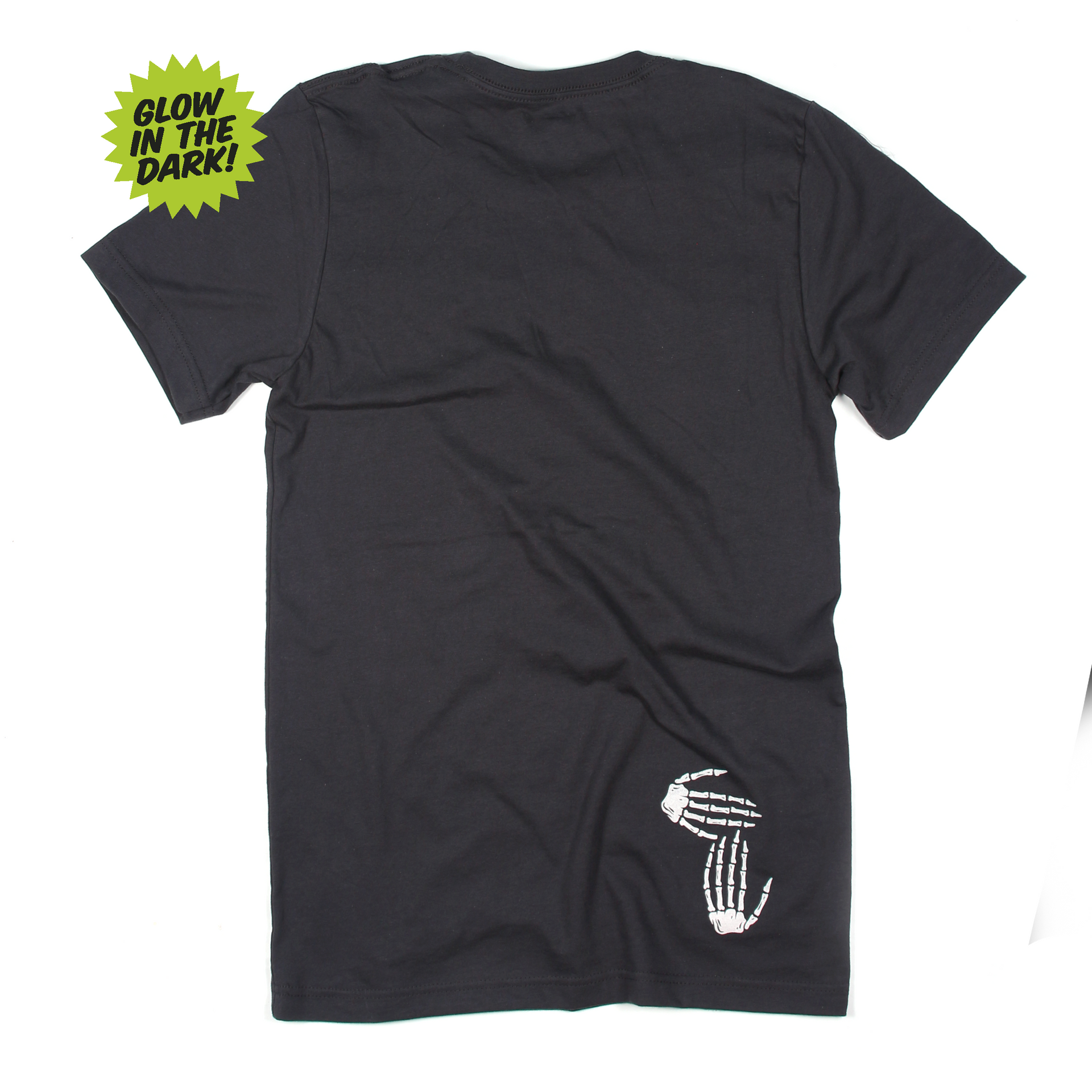 A spooky fun play on our iconic logo printed on a coal grey tee with Glow-in-the-Dark ink! Pick up this limited edition Skeleton Hands tee to be the hit of all your Halloween festivities before they disappear!